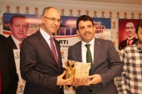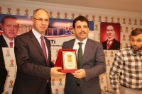 etkinliklere katılmak üzere geldiği Karadeniz Ereğli'de AK Parti İlçe Başkanı Mehmet Fatih Çakır'a
