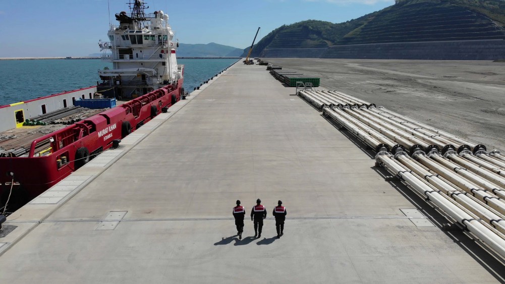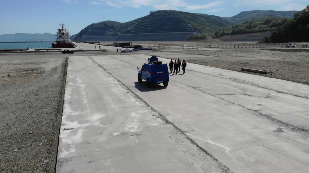 Zonguldak'ın Çaycuma ilçesinde 25 milyon ton kapasitesiyle Türkiye'nin 3. büyük limanı olma özelliğini taşıyan Filyos Limanı'nın güvenliği jandarmaya emanet. Karadeniz'in doğal gazının karaya çıkartılacağı limanda jandarma ekipleri hem yaya hem de zırhlı araçlarla bölgenin güvenliğini sağlıyor.