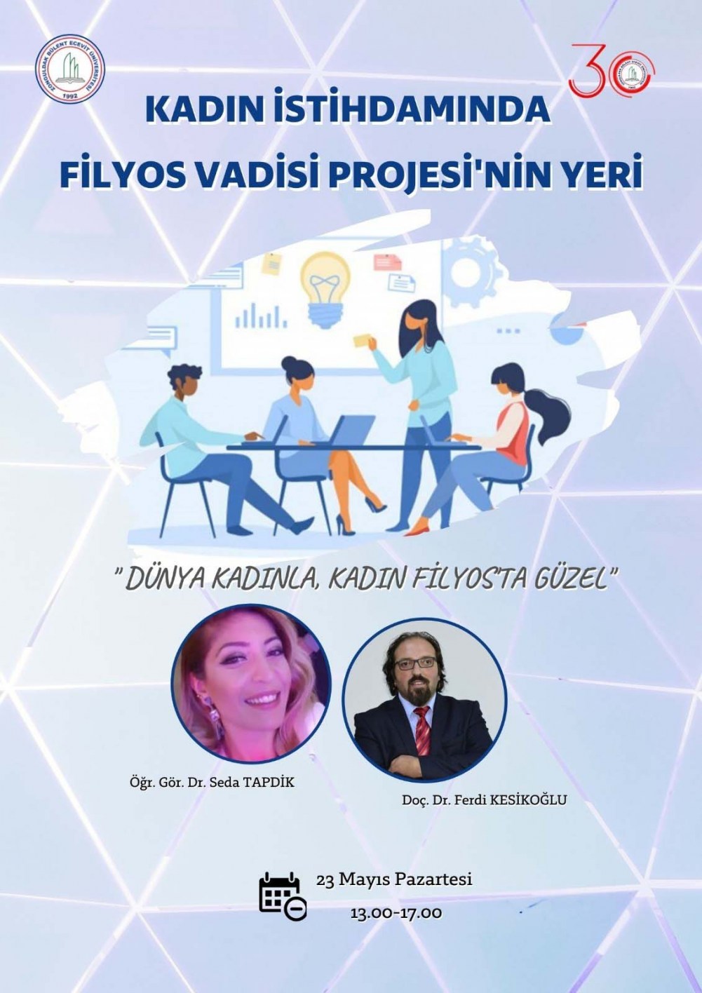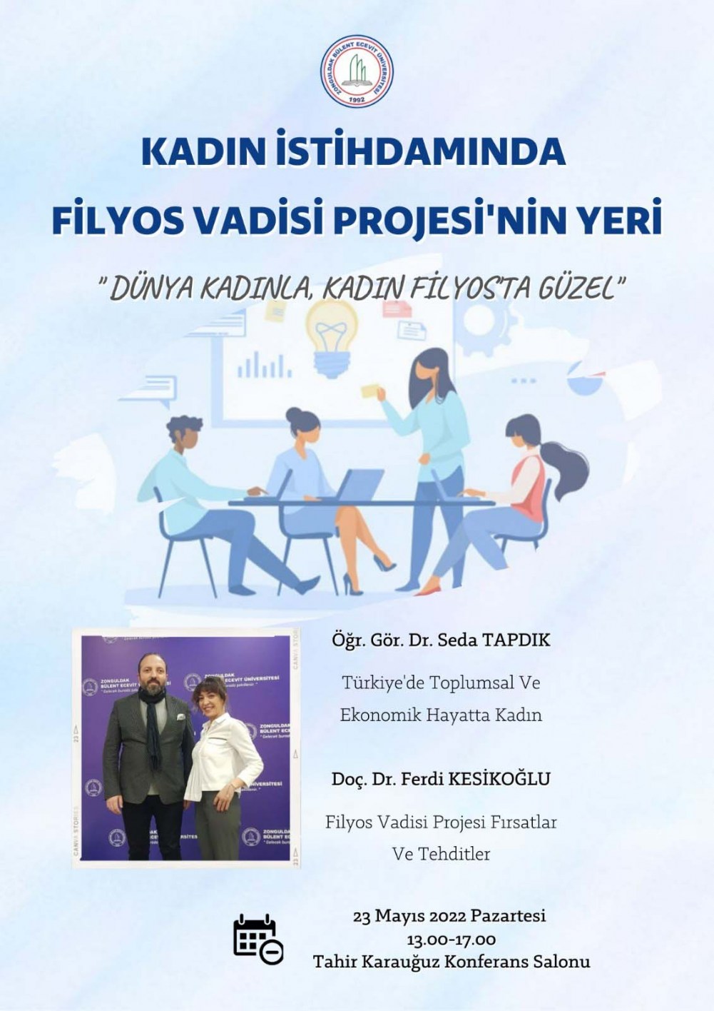 Zonguldak Bülent Ecevit Üniversitesi tarafından ‘Filyos Vadisi Projesi’nde Kadın İstihdamı’ konulu bir konferans gerçekleştirildi. Tahir Karauğuz Konferans Salonu'nda Öğr. Gör. Kayhan Kafalı danışmanlığında Fen-Edebiyat Fakültesi Psikoloji Bölümü 3. sınıf öğrencileri tarafından koordine edilen konferansta İktisadi ve İdari Bilimler Fakültesi Çalışma Ekonomisi Bölümü Öğr. Üyesi, Zonguldak Kent Konseyi Başkan V. ve Zonguldak Teknopark Genel Müdürü Doç. Dr. Ferdi Kesikoğlu ile Devrek Meslek Yüksekokulu Yönetim ve Organizasyon Bölümünden aynı zamandan üniversitede Kadın Sorunları Uygulama ve Araştırma Merkezi Müdür Yardımcısı Öğr. Gör. Dr. Seda Tapdık konuşmacı olarak yer aldı.