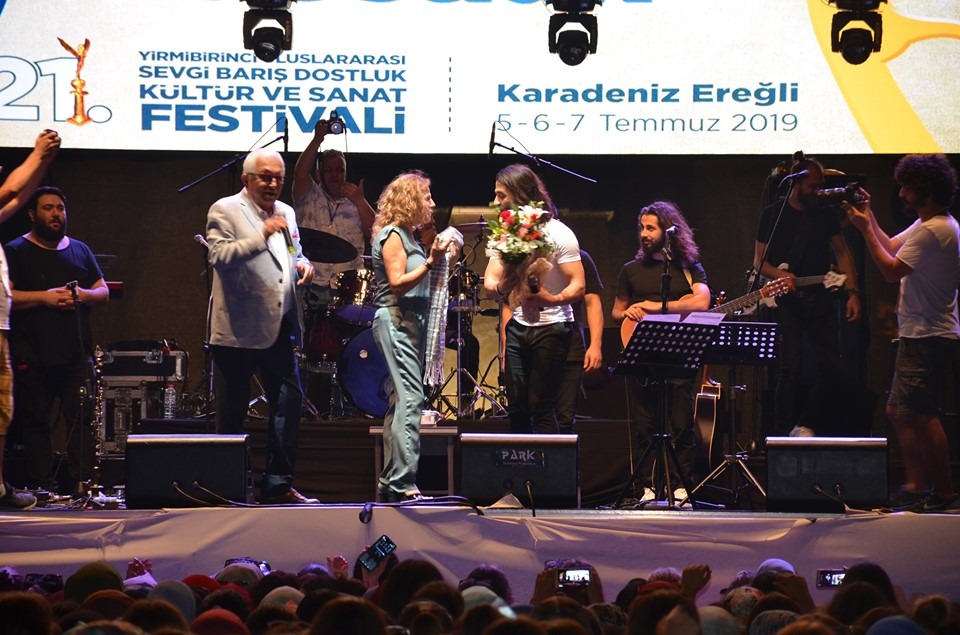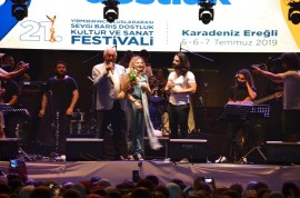 Karadeniz Ereğli Belediye Başkanı Halil Posbıyık ve eşi Neriman Posbıyık, ünlü sanatçı Koray Avcı ve Yıldız Tilbe’ye festivale katkılarından dolayı teşekkür ederek, çeşitli hediyeler takdim ettiler.