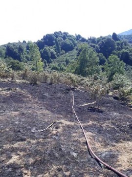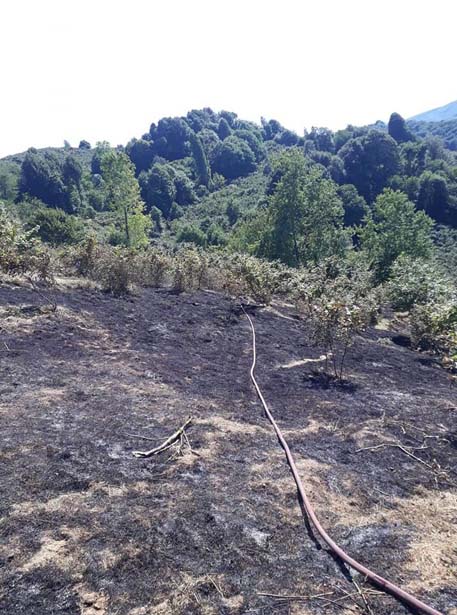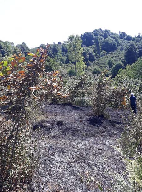 Zonguldak'ın Alaplı ilçesinde çıkan yangında üç dönümlük fındık bahçesi yandı.