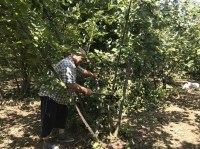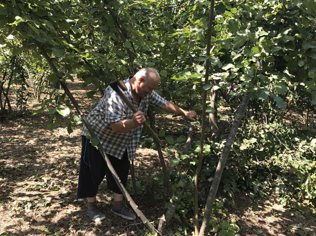 Okumuş, kendisine müdahale eden komşularına aldırış etmeden fındık dallarını tek tek kesti.