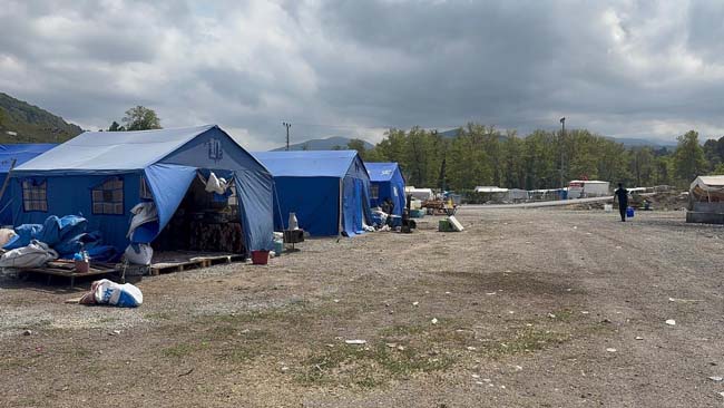 Zonguldak'ın Alaplı ilçesine fındık hasadı için gelen mevsimlik tarım işçileri, kurdukları çadırlarda yaşam mücadelesi veriyor.