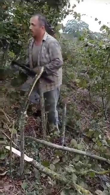 Zonguldak'ın Alaplı İlçesinde Muhterem Şahin isimli fındık üreticisi açıklanan fiyatların açıklanmasının ardından tarlasındaki ağaçları baltayla kesti.