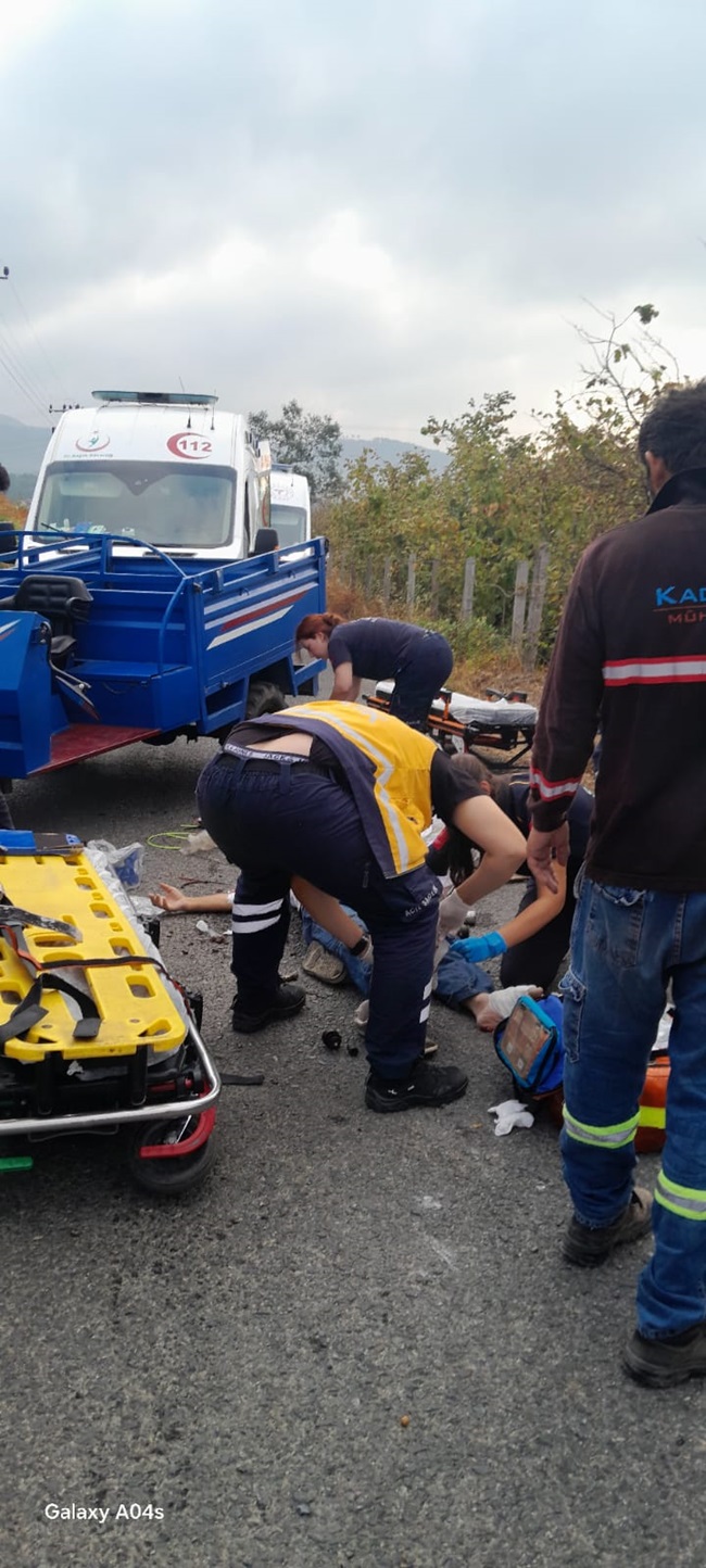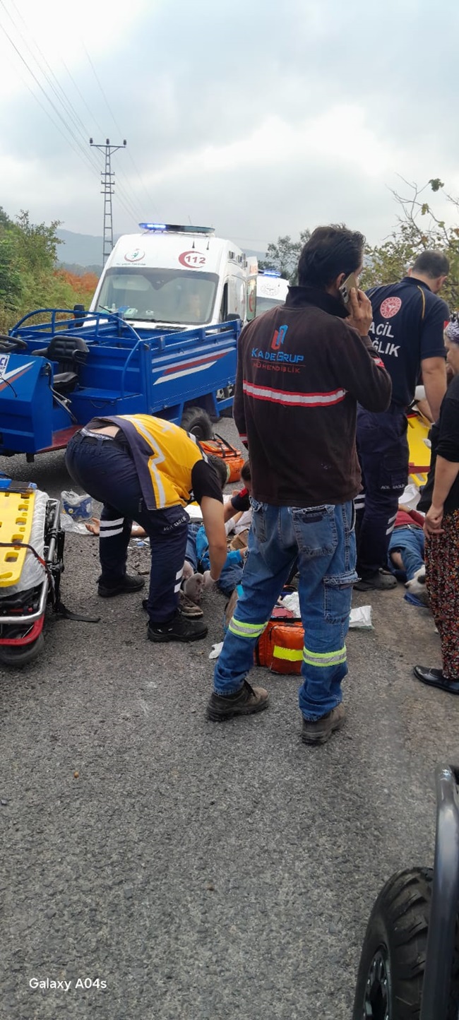 Zonguldak’ın Ereğli ilçesinde fındık toplamaya giden aile halk dilinde patpat olarak bilinen tarım aracı ile kaza yaptı. .