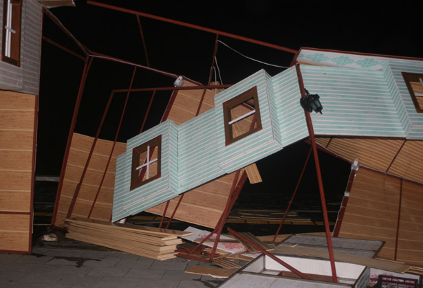 Akçakoca Belediyesi tarafından bir firmaya yaptırılarak kiraya verilen stantlar, gece boyunca esen şiddetli rüzgara dayanamayarak yıkıldı.