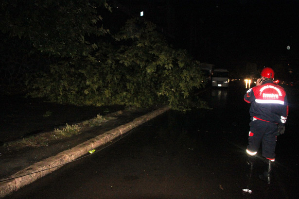 yıkıldığını, ağaçların ve panoların devrildiğini belirterek tüm itfaiye
