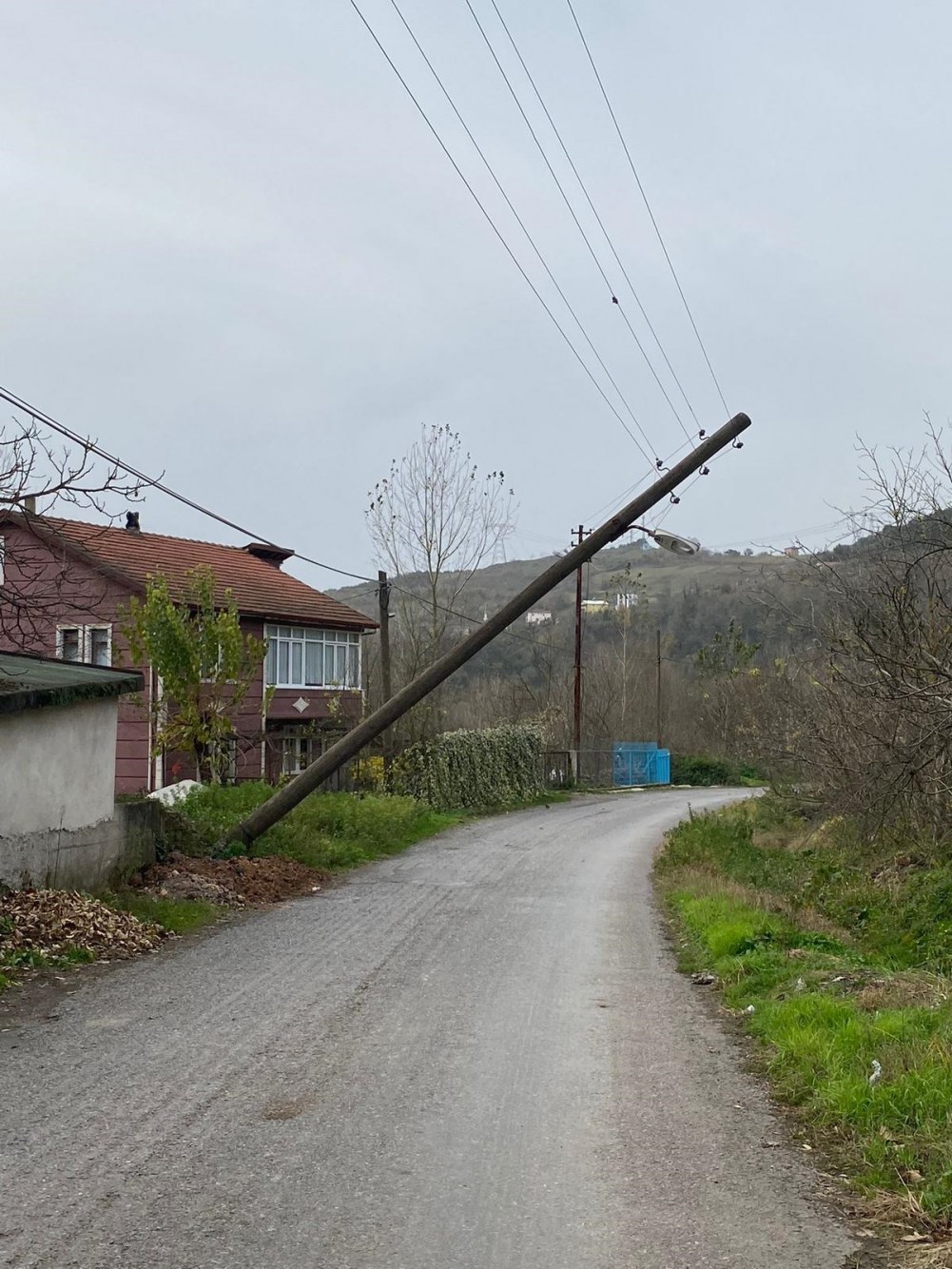 Zonguldak’ın Ereğli ilçesinde etkili olan fırtına ve şiddetli rüzgâr elektrik direklerini yıktı.
