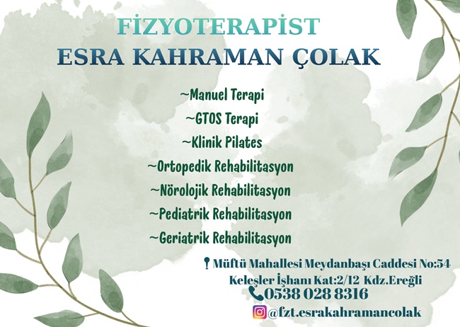Karadeniz Ereğli’de Fizyoterapist Esra Kahraman Çolak tarafından Özel Sağlık Hizmet Birimi açıldı.