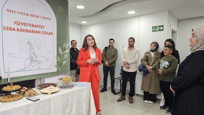 Fizyoterapist Esra Kahraman Çolak, açılışta yaptığı konuşmada, “Fizyoterapi Merkezimizde Manuel Terapi, GTOS Terapi, Klinik Plates, Ortopedik Rehabilitasyon, Nörolojik Rehabilitasyon, Pediatrik Rehabilitasyon, Geriatrik Rehabilitasyon olmak üzere pek çok konu hizmet veriyoruz. Açılışımızda bizleri yalnız bırakmayan herkese sonsuz teşekkürler. Fizyoterapi ihtiyacı olan herkesi merkezimize bekliyoruz” dedi.