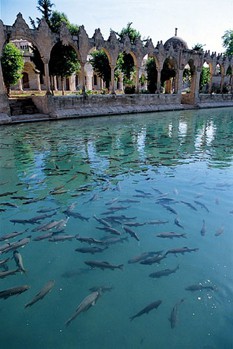 Kutsal balıklara yem atın: Balıklıgöl, (Aynzeliha ve Halil-ur Rahman Gölleri ) İbrahim Peygamber'in ateşe atıldığında düştüğü yer olarak biliniyor. Bu iki göl Urfa'nın en çok ziyaretçi çeken yerleri.