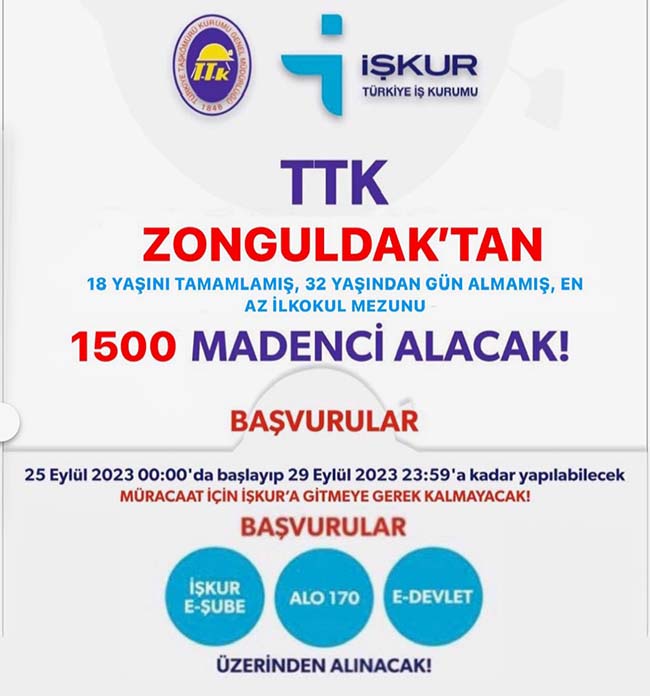 Türkiye İş Kurumu Zonguldak Çalışma ve İş Kurumu İl Müdürlüğü, Türkiye Taş Kömürü Kurumu (TTK) iş başvurularıyla ilgili önemli duyuruda bulundu.