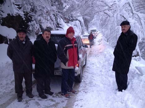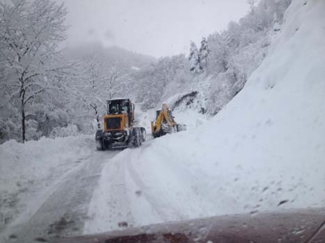 Zonguldak'ın Alaplı ilçesine bağlı Gümeli beldesinde kar yağışı hayatı olumsuz etkilerken, mahalle yollarının kapanmasına neden oldu. Beldeye bağlı mahallelerde kar kalınlığı ise 60 santimetreye ulaştı.