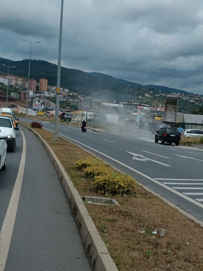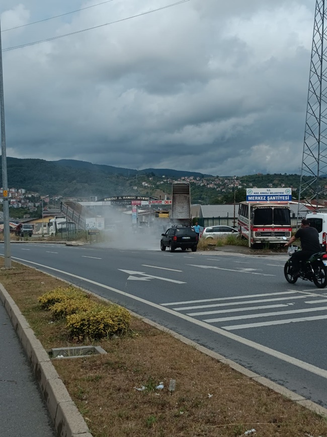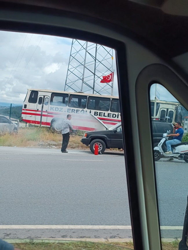 Karadeniz Ereğli’de hareket halindeki cipin motor kısmı alev aldı. Araçta maddi hasar meydana geldi.