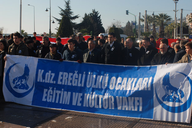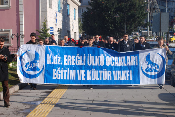 Bölücü Terör Örgütü PKK yandaşları tarafından bıçaklanarak öldürülen Ege Üniversitesi Ülkü Ocakları Kampüs Başkanı Fırat Yılmaz Çakıroğlu için Kdz. Ereğli'de Ülkü Ocakları tarafından yürüyüş düzenlendi.