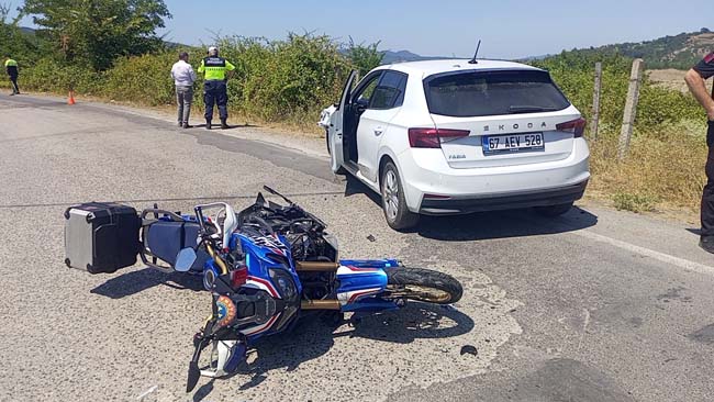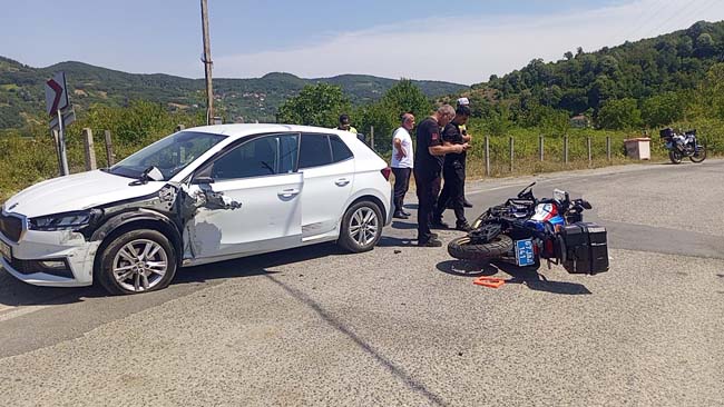 Zonguldak'ın Çaycuma ilçesinde jandarmaya ait motosikletle otomobilin çarpışması sonucu meydana gelen kaza maddi hasarla atlatıldı.