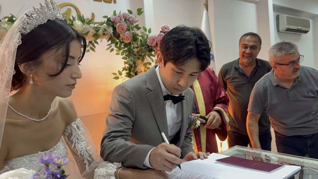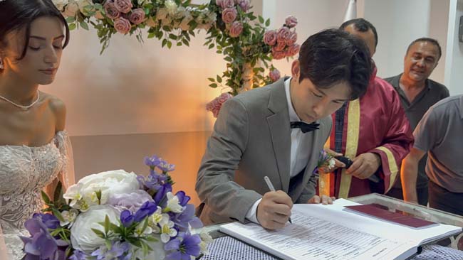Karadeniz Ereğli ilçesinde yaşayan Tuana Nur Yıldız, eğitim için internetten tanıştığı Kyungsu Kang ile dünya evine girdi.