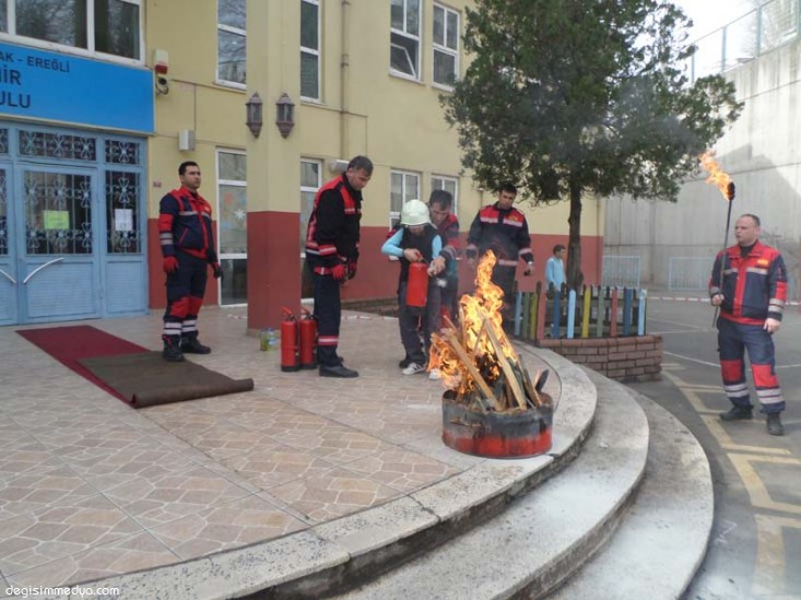 Sivil Savunma Haftası etkinlikleri kapsamında Erdemir İlkokulu'nda Kdz. Ereğli İtfaiye Müdürlüğü ile yangın ve deprem tatbikatı yapıldı.