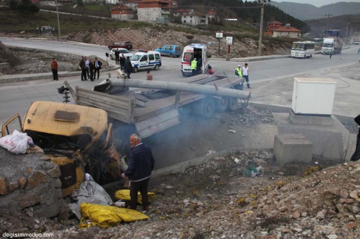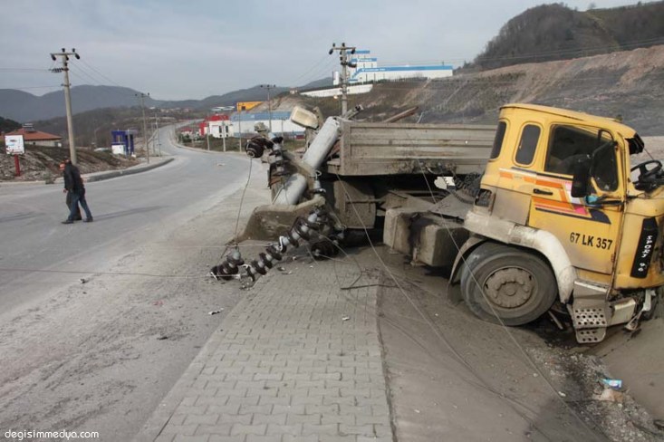 Zonguldak'ın Ereğli ilçesinde köpeğe çarpan TIR sürücüsü direksiyon hakimiyetini kaybederek önce elektrik direğini yıktı, daha sonra istinat duvarına çarptı. Kupası parçalanan TIR'ın sürücüsü ambulansla hastaneye kaldırılırken, kazada ölen köpek iş makinesinin açtığı çukura konularak defnedildi.