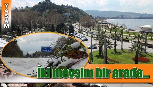 Zonguldak'ın Ereğli ilçesinde sabah saatlerinde kar yağışı ile güne uyanan vatandaşlar, öğleden sonra güneşli hava ile iki mevsimi aynı anda yaşadı.