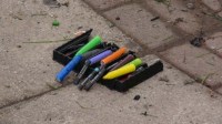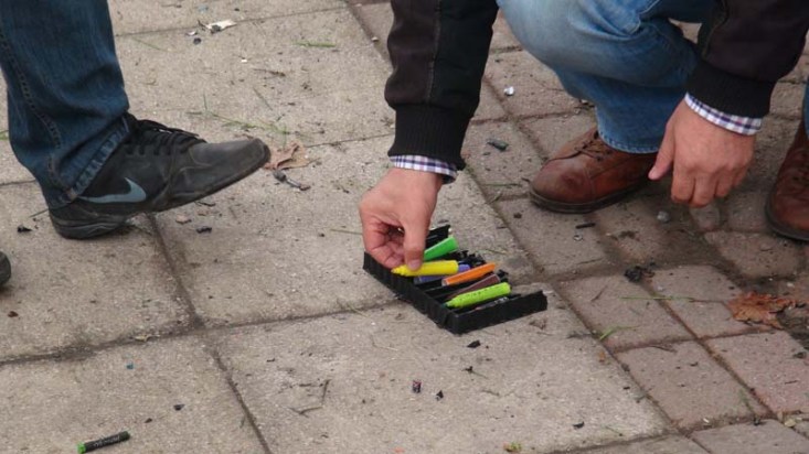 paketten pastel ve kuru boya kalemleri ile keçeli kalemler çıktı. Polis,