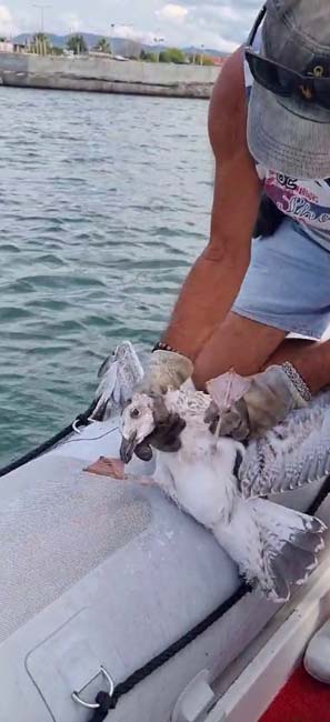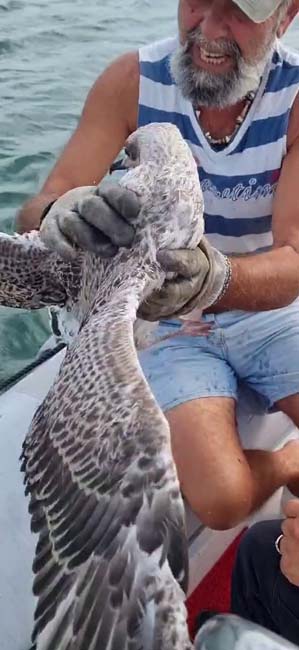 Martının deniz yüzeyinde çırpındığını görünce yardım etmek istediklerini ifade eden kulüp yöneticisi Sezai Çimenoğlu, "Bu bilinçsiz avlanmanın neticesinde biz olmasak bu martılar böyle ölüyor. Bu kaçıncı kurtardığımız martı" diye tepki gösterdi.