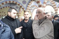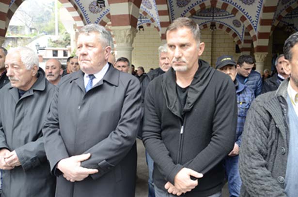 futbolcu Ergün Penbe, cenazede taziyeleri kabul etti.