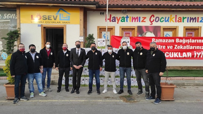 Zonguldak’ın Ereğli ilçesi Galatasaray Taraftarları Derneği Başkanı Timur Şen ve Yeni Yönetim Kurulu üyeleri, Ramazan ayı dolayısıyla LÖSEV’e katkı sağlamak amacıyla 50 koli Ramazan yardımında bulundular.