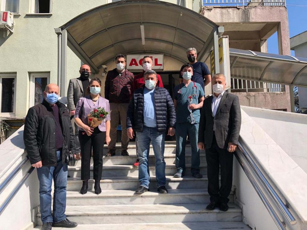 Zonguldak Alaplı ilçesinde gazeteciler, Alaplı Devlet Hastanesine ziyarette bulunarak doktorların ve sağlık çalışanlarının 14 Mart Tıp Bayramı'nı kutladı. Sağlık çalışanlarıyla sohbet eden Başkan Bostancı ve İlçede faaliyet gösteren Gazeteciler çiçek hediye ederek özellikle Covid-19 döneminde gösterdikleri fedakarlıklarından dolayı teşekkür etti.