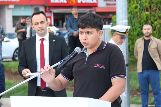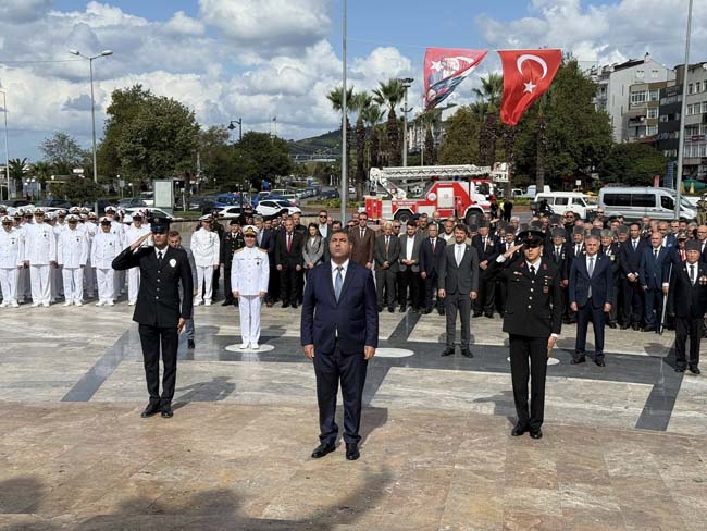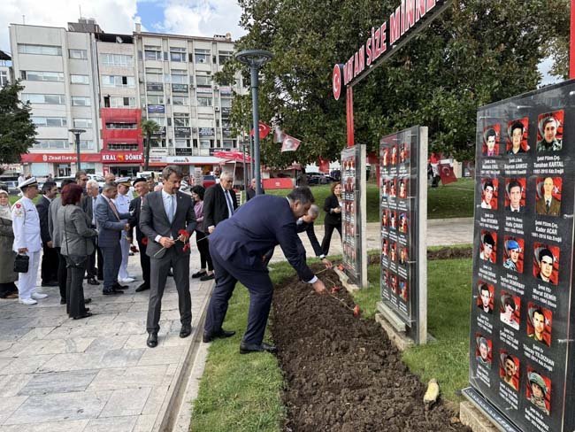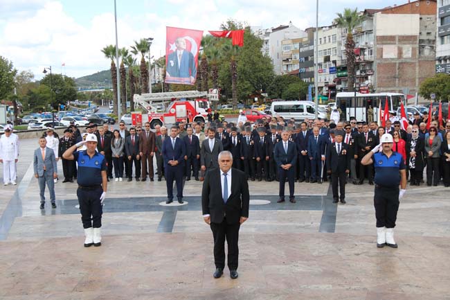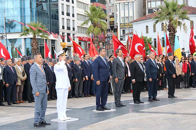 19 Eylül Gaziler Günü dolayısıyla düzenlenen törende Atatürk Anıtı’na çelenkler sunularak, İstiklal Marşı okundu.