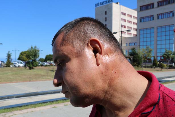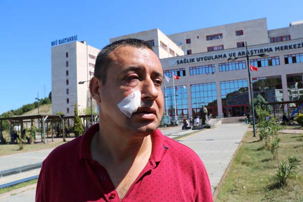 Gazi olduğunu söylemesine rağmen yüzde 98 engelli yeğeninin yanında işçiler tarafından darp edildiği belirten gazi Hasan Özdemir, "Kardeşimin sakat çocuğu vardı. Yüzde 98 özürlü. Onu okulunu okumak için liseye kaydını yaptırmaya getirmiştik. Orada da bir yol çalışması varmış. Yol çalışması belediyenin aşağı taraftaymış. Bizi çevirdiler. Un fabrikasının oradan doğru aşağıya indik. Yolda herhangi bir şey yoktu. Biz kayıt yerine gittik. Liseye kayıt ettirdik. Oradan dönerken az bir ilerisine araba çekmişler. Dönmeye çalıştık. Bir de baktık. 10 kişi yanımızda. Bize 'burada ne işiniz var' dediler. Döndüğümü gideceğimi söyledim. Oraya girmemin yasak olduğunu söylediler. Arabada otururken adam bana yumruk vurdu. Camım açıktı. Biri vururken diğeri de vurdu. Bu darbeyi aldık. Onların hepsi tuttu öbürü de vurdu. Hadi beni bırak yüzde 90 sakat çocuk var arabada. Terörle mücadele gazisiyim. 1992 yılında Kahramanmaraş'da gazi oldum. Sol taraftan darbe aldım. Sol tarafım tamamen felç. Hiç his yok. Sağ tarafa da onlar vurdu. Şu an şikayetçiyim. Gözün bir tanesi zaten görmüyor. Bir tanesi de şimdi kör oldu. Şu anda plastik cerrahiye gönderdiler. Onların vurmasından damarlarda çatlaklık var. Göze vuruyor. Göze yüzde 80 zarar vereceğini söylüyor. Bu gün yada yarın ameliyat yapacaklar. Zaten kurumlar da biliyor. Sayın Valimize de ilettik. İlgilenildi, kurumlar bizim imdadımıza yetişti. Ambulansla hastaneye gittik. Kanun neyse ilgileniliyor. Ama davacıyım. Davamdan da vazgeçmiyorum. Kesinlikle davacıyım" dedi.