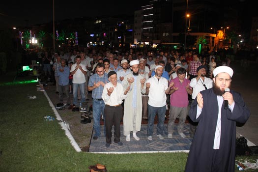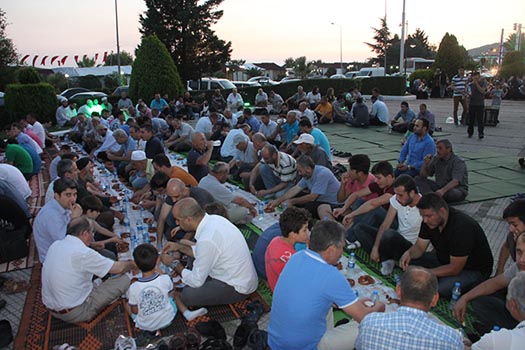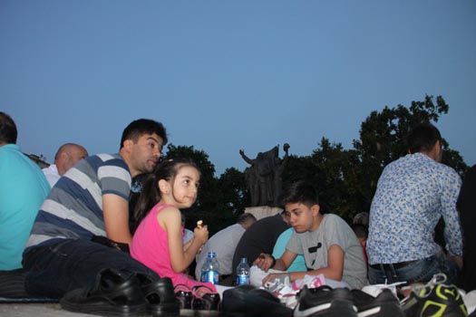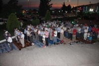 ile oruçlar açılırken, akşam namazı cemaat eşliğinde anıt önünde kılındı.