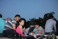 eşleri ile katılanlar, yerde oturarak iftar saatini bekledi. Ezanın okunması