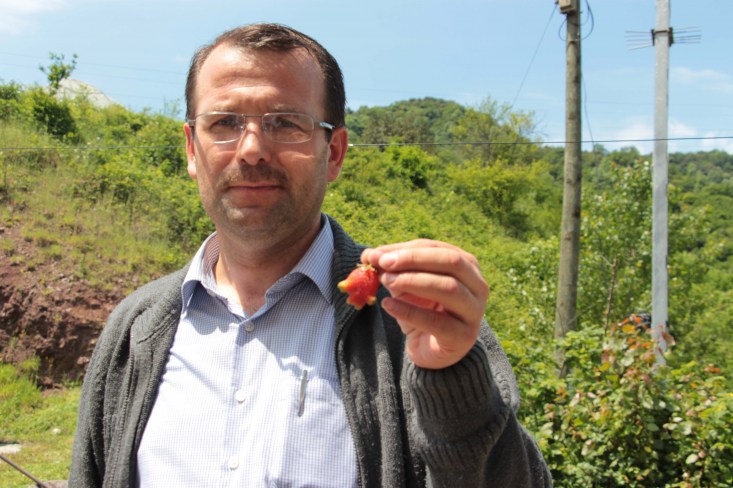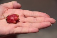 bahçesinde yetiştirdiği çilekleri topladığı sırada bir tanesinin küçük insan