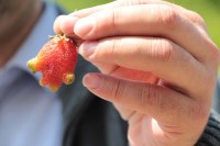 Halil Üstünyer'in tarlasında bulduğu 4 parmaklı çileği,