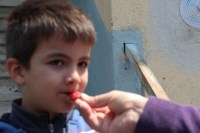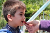 Üstünyer'in oğlu Salih yiyerek tadına baktı.