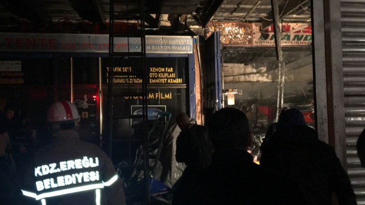 Ereğli Belediyesi İtfaiye Müdürü Muhammed Ali Ateş yangın ile ilgili yaptığı açıklamada; "Kışla Mahallesi A Blok 34 Nolu iş yerinde bir yangın ihbarı gördük. Gördük diyorum. Çünkü itfaiye dumanları görüyor. Vatandaş ihbarı olmadığı için arkadaşlar hızlı bir şekilde olay yerine intikal ediyor. Olay yerine geldiğimizde Tenteci yani petrol ürünü olan muşamba, branda dükkânında hızlı bir şekilde müdahaleye başladık. Ve çevredeki dükkânlara sirayet etmeden kontrol altına aldık. Soğutma işlemi yapıyoruz. Soğutmadan sonra yangının çıkış sebebini araştıracağız."
