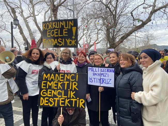 Katılımcılar, TÜİK’in gerçeği yansıtmayan verilerine değil, emeğin ve alın terinin karşılığında üretilen millî gelirden adil pay talep ettiklerini ifade etti. “Bizden çalınanı değil, hakkımız olanı istiyoruz” sözleriyle özetlenen çağrıda, kişi başına düşen millî gelir rakamlarının gerçek yaşam koşullarını yansıtmadığına dikkat çekildi.