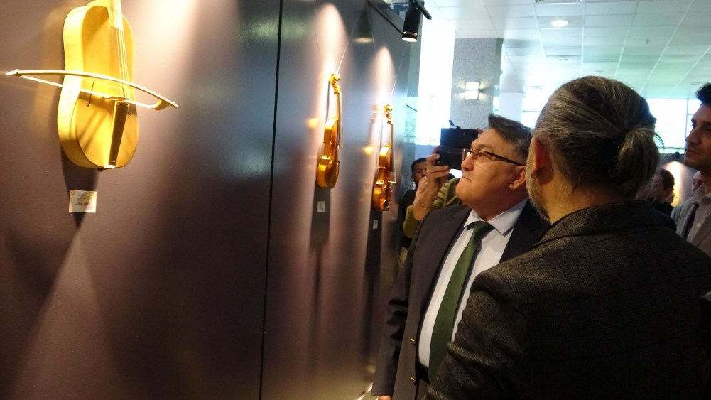 Katılımcıların yoğun ilgi gösterdiği sergide luthierlerin (çalgı yapım ustaları) ürettiği keman, viyola, viyolonsel, barok keman ve viel gibi tasarımlar ve Devlet Konservatuvarı öğrencilerinin çalgı tasarım dersinde tasarladıkları çalgılar yer aldı. Devlet Konservatuvarı Müzik Bölümü Yaylı Çalgılar öğretim elemanı Öğr. Gör. Cem Dertsiz, Rektör Özölçer’e sergi ve çalıştay hakkında detaylı bilgi verdi. Rektör Özölçer, çalgı yapımı alanında uzmanlaşmış ustalar ve geleceğin müzik profesyonellerinin bir araya gelerek deneyimlerini paylaşma ve iş birliği yapma fırsatı sunduğu için organizasyona katkıda bulunanlara teşekkür etti.