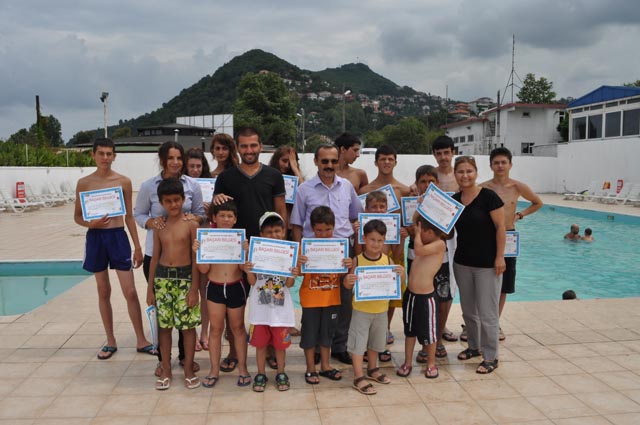 Yaz Aktivite ve Spor Okulu 6-16 yaş arası yüzme kursunu başarıyla bitiren öğrencilere ?Başarı Belgelerini? Kilimli Belediye Başkan Yardımcısı Ahmet Sönmez verdi. Kilimli Belediye Başkan Yardımcısı Ahmet Sönmez, Zonguldak Çocuk Aktivite Merkezi Kurucusu Sevim Arı ve yüzme kursu hocalarını, okulların tatile girdiği bir dönemde öğrencilerin boş zamanlarını değerlendirmelerinde yüzme öğrenme, bedenlerinin sağlıklı bir şekilde gelişimine verdikleri katkı ve kurs süresince bilgi ve beceri kazandırdıkları için tebrik etti. Yüzme kursunu başarıyla bitiren öğrencileri tek tek kutlayan ve başarı belgelerini veren Kilimli Belediye Başkan Yardımcısı Ahmet Sönmez, sağlıklı bir neslin yetiştirilmesi için bu türden bilgi ve beceri kazandıran kursların yaygınlaşması ve desteklenmesi temennisinde bulundu.