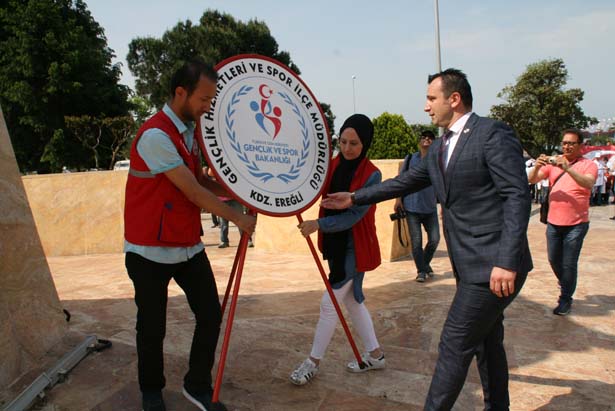 Karadeniz Ereğli Gençlik Hizmetleri ve Spor İlçe Müdürü Serkan Keleş, günün anlam ve önemine ilişkin konuşmasında Büyük Önder Mustafa Kemal Atatürk'ün 19 Mayıs 1919'da Samsun'dan başlattığı özgürlük hareketinin tüm yurda yayıldığını, milletimizin azim ve cesaretle tek yürek olarak giriştiği milli mücadele sonucunda zaferle taçlandırıldığını belirtti..
