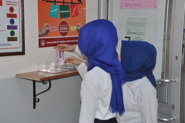 Kız İmam Hatip Lisesi ve Ortaokulu öğrencileri "Askıda Ekmek" projesi başlattı. Proje çerçevesinde okul harçlığı olmayan, ihtiyacı olan arkadaşlarını düşünen öğrenciler, harçlıklarıyla aldıkları yiyecek kartlarını "Askıda Ekmek" kutularına bırakıyor.