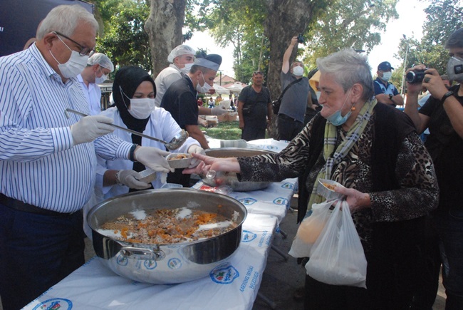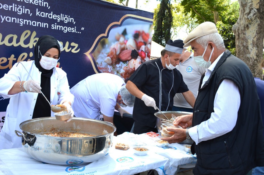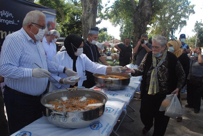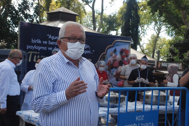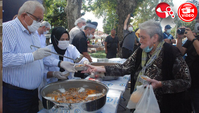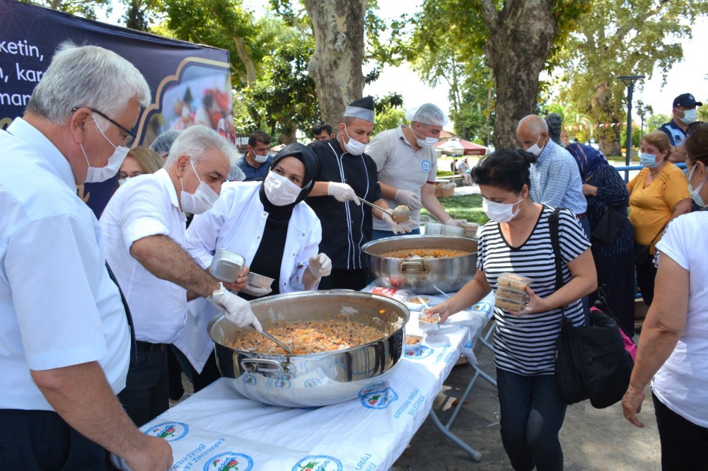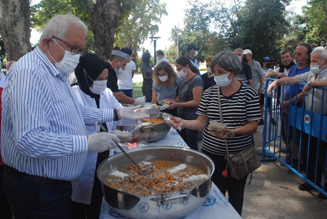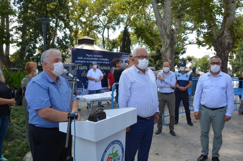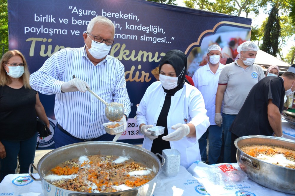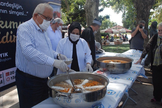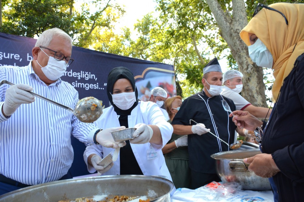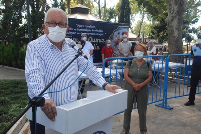 Posbıyık, Belediye Din Hizmetleri Müdürü Metin Avcı’nın Kur’an-ı Kerim’den ayet okuduğu etkinlikte edilen duanın ardından aşure tencerelerinin bulunduğu alana geçerek kepçe ile kaplara doldurduğu aşurelere vatandaşlara ikram etti.