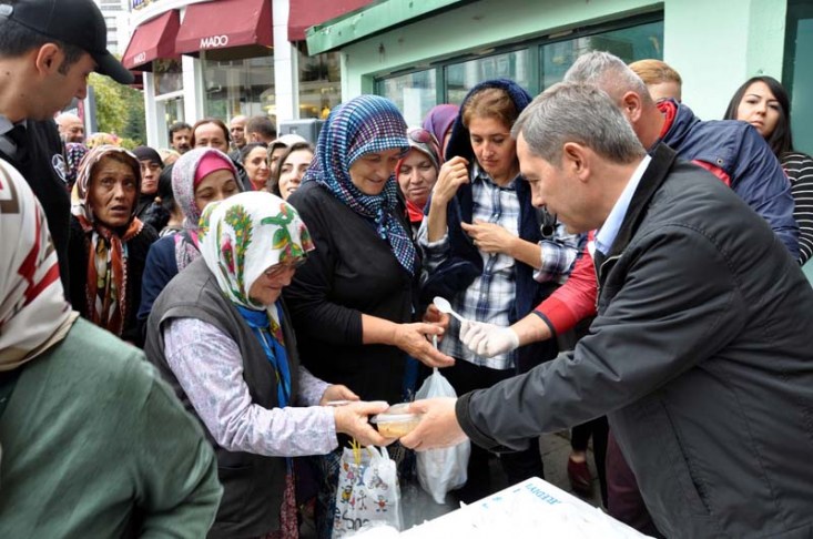 Karadeniz Ereğli Belediyesi 5 bin kişiye aşure dağıttı. Abdi İpekçi Sergi Salonu önünde yapılan duanın ardından vatandaşlara Belediye Başkanı Hüseyin Uysal ve Başkan Yardımcıları tarafından aşure dağıtıldı.