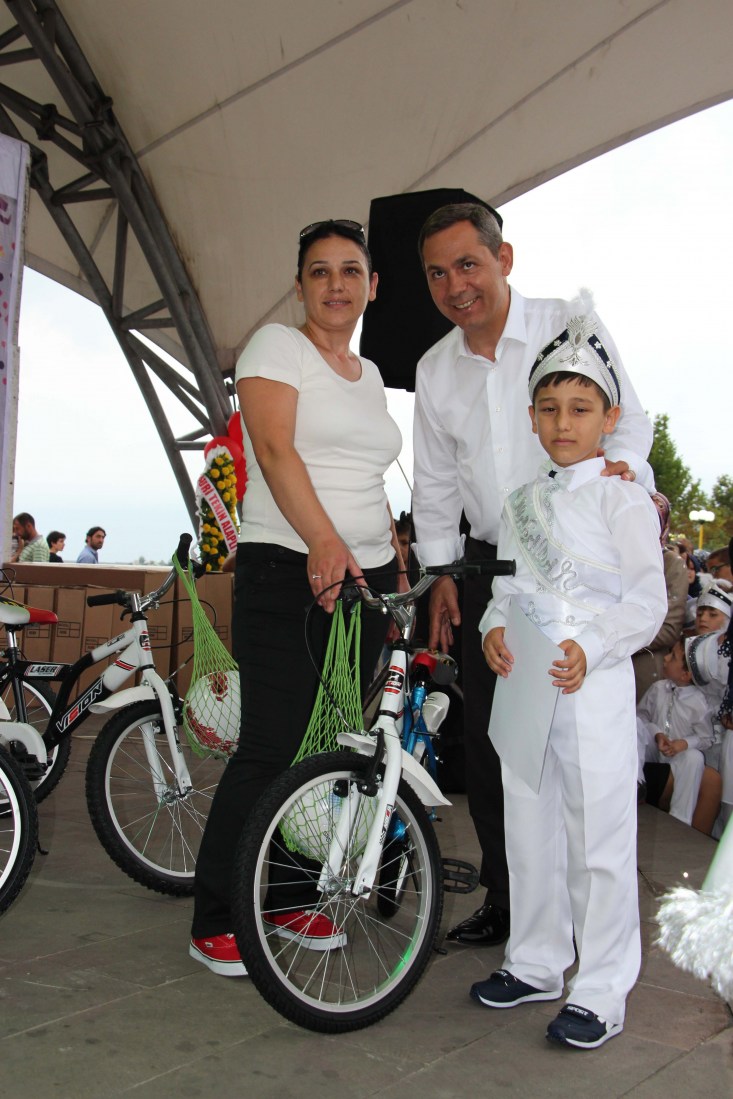 140 çocuğu temsilen 5 sünnet çocuğuna "Cesaret Sertifikaları" ve Bisikletleri