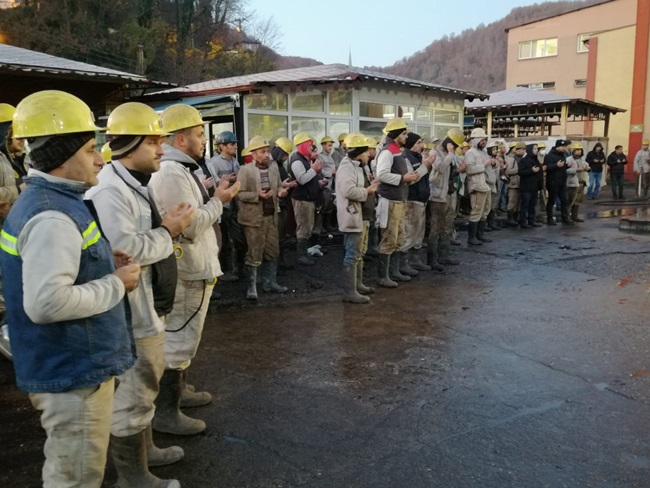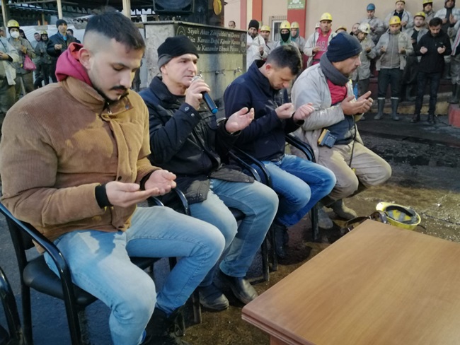 Törende Kur’an-ı Kerim okunarak tüm maden şehitleri ve kazasız üretim dileğiyle dualar edildi. Ardından kuyu başında madencilerin ve katılımcıların duaları eşliğinde kurban kesimi gerçekleştirildi.