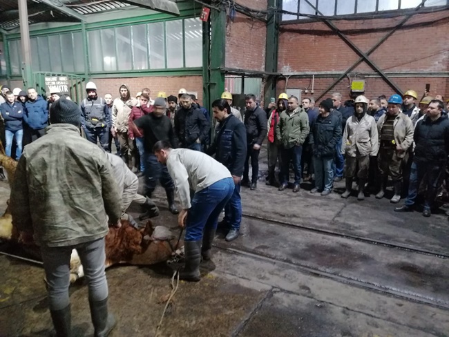 Türkiye Taşkömürü Kurumu (TTK) Karadon Müessesesi Gelik İşletme Müdürlüğü’ne bağlı maden ocağında Kartiye 2 ve Kartiye 3 ocaklarda açılan yeni üretim panolarında kazasız üretim dileğiyle kurban kesim töreni düzenlendi.