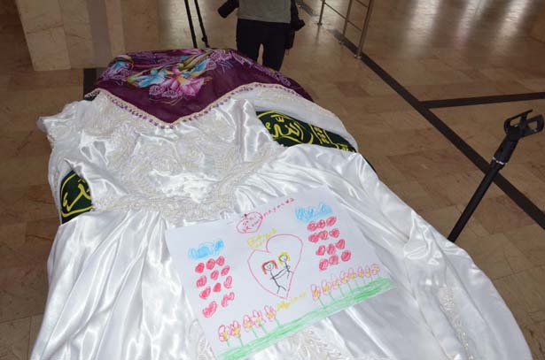 bizim" yazdı. Küçük kızın tabutun üzerine bıraktığı resim ise cenazeye