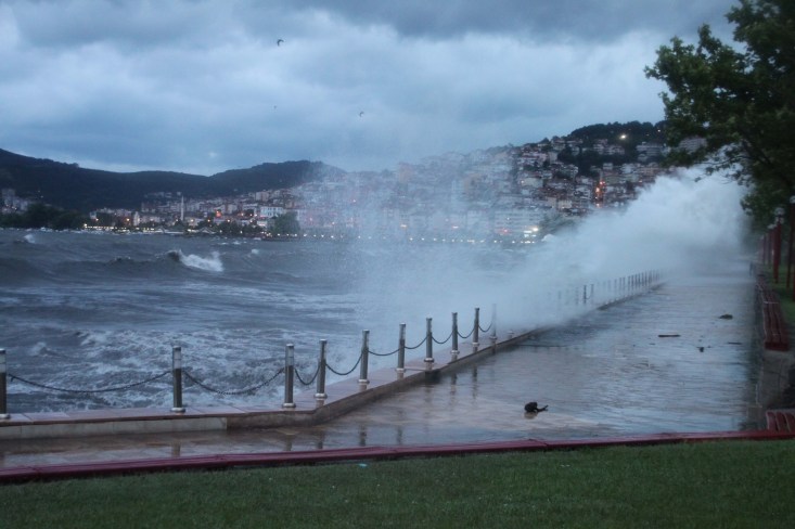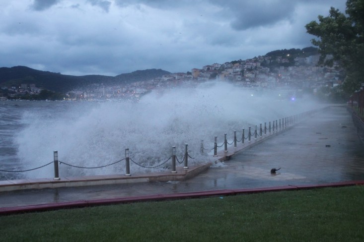merkezinde ise rüzgârla birlikte kıyıya vuran dalgalar renkli görüntüler