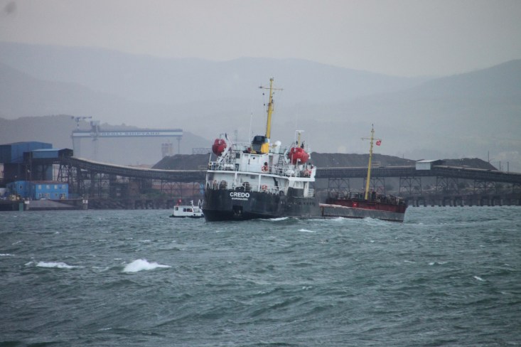 kuru yük gemisi, acente römorkörü tarafından liman içine alındı. Ereğli